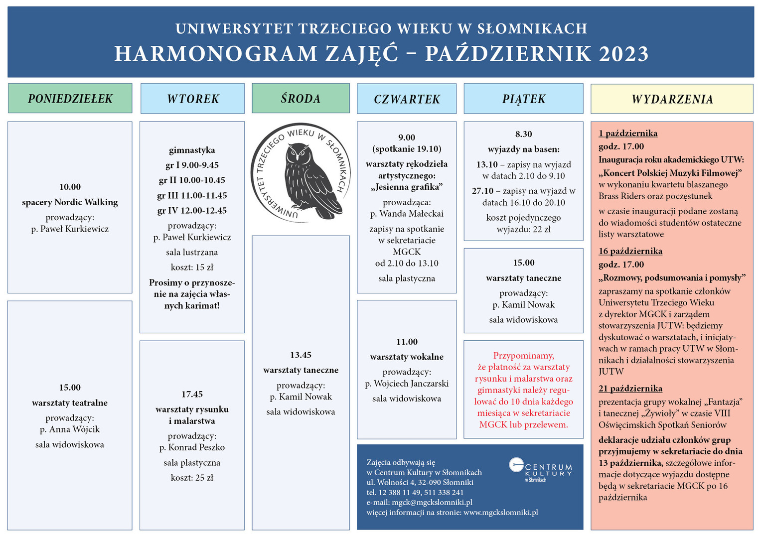 Harmonogram zajęć UTW na październik 2023